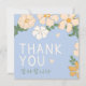 Bonito coreano "Obrigado" está escrito em inglês e coreano, e retrata uma simples fronteira floral contra um fundo azul-bebê. Este design de agradecimentos coreano minimalista é excelente por dizer obrigado a uma mãe coreana, pai coreano, avós, amigos, colegas de trabalho e muito mais.