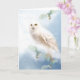 Uma bela coruja das neves com outras três corujas menores no meio das nuvens. Adicione texto para personalizar.