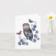 Cartão Coruja de Aquarela, Borboletas e Flores