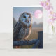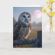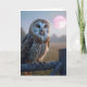 Cartão Coruja numa cerca com lua rosa