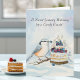 Designed to honor a cherished cousin, this January birthday card features a serene winter scene with a Red-breasted Nuthatch adding a gentle touch to a vanilla cake topped with blueberries and raspberries. Hand-painted in watercolor and pen, it offers a thoughtful blend of nature, warmth, and artistic detail for her special day.