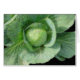 Uma usina de repolho está madura e pronta para ser colhida. São lindas folhas azuis/verdes sentadas sobre um fundo preto. O original é uma pintura em miniatura de óleo por Kathie Miller