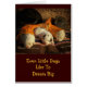 Uma imagem espantosa de três filhotes Pirenéus Excelentes adormecidos num cobertor de sela, rodeados por botas e chapéus de cowboy. Esta imagem é do fotógrafo C. Everitt, prêmio vencedor.