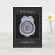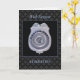 Quando um polícia morre, este cartão será perfeito para os honrar, tanto na sua vida pessoal como no cumprimento das suas obrigações. Um crachá é visto no centro da placa, com uma cerca como um padrão preto no fundo. Perfeito para homem ou mulher.
