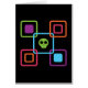 Esta ilustração brilhante e colorida da arte do crânio parece que pertence a um videogame vintage! Este design retroaromatizado apresenta quadrados laranja neon, roxo, azuis e verdes brilhantes e contornos com um crânio verde brilhante no centro! Esta arte do crânio é perfeita para qualquer um que ama designs de desenho animado inspirados em anos 80 e divertidos.