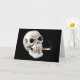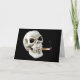 Crânio com cigarro iluminado isolado em preto por deixar de encorajar o tabagismo.