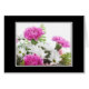 Caracterizando cravos cor-de-rosa e as margaridas brancas cercados por uma beira preta. Fotografia original por Janet Hastings 2010.