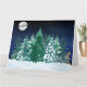 Uma floresta quieta e nevada. No céu, um trenó e 8 renas silhuetados contra a lua cheia. Na floresta, alguém, ou alguma coisa, está se mexendo.