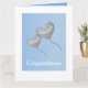 Cartão azul de parabéns de Natal para pais com gêmeos bebês. A design mostra balões em forma de coração no céu. Cada balão pode ser personalizado para os nomes dos gêmeos e mensagens que o dentro também pode ser personalizado. Um cartão extra moderno que pode ser dado pela família, amigos ou padrinhos.
