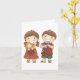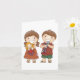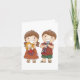 Duas crianças, um menino e uma garota segurando alguns brinquedos. Este design parece realmente eficaz com este Cartão de Saudação