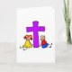 Um desenho animado bonito de uma garotinha sentada ao lado de uma cruz gigante. Imagem disponível em vários presentes e produtos. Sofram as crianças pequenas para vir até mim, e proíbam-nas de não o fazer: por isso é o reino de Deus - Mark 10v14