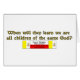 A citação do Papa João Paulo II, mostra a Bandeira Polonesa, ou Bandeira da Bandeira da Cidade do Vaticano, e lê "Quando eles vão aprender que somos todos filhos do mesmo Deus."