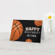 Um Cartão de Aniversário Feliz de Baile de Basquete. Bolas de basquete com um desejo de aniversário feliz em um fundo negro. Personalize com seu nome e faça um cartão pessoal especial para um garoto ou uma garota que ama basquete.