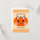 Um cartão de Feliz Dia das Bruxas de um gato de abóbora laranja para uma troca de cartas de Halloween ou para entregar para amigos, familiares, colegas de escola, etc. A frente pode ser personalizada e a parte de trás tem uma bela mensagem de Halloween, que também pode ser personalizada. Um cartão de Dia das Bruxas de abóbora fofo para crianças.