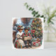 Uma manhã de natal vintage personalizou o cartão de Natal. Duas crianças de cor abrindo presentes de férias todos vestidos no seu melhor domingo. Víblias bonitas para um Natal antiquado.