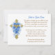 Um belo cartão memorial para funerais, celebração de encontros da vida ou para enviar a amigos e familiares em homenagem a alguém que perderam. Você pode adicionar uma foto na área personalizada e a história de vida do seu ente querido. O verso tem um poema religioso para conforto, lembrando que seu ente querido está agora nos braços de Deus. As cores de destaque usadas são azul e dourado. Há também uma cruz dourada com flores azuis.