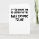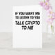 Funny crypto saying: If You Want Me To Listen To You Talk Crypto To Me. Perfect for fans of altcoins and crypto currency. Ideal gift for miners, traders and fans of cryptocurrencies.
