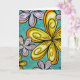 Cartão Cumprimento floral azul e Dourado
