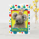 Feita especialmente para os meus amigos australianos.... Celebre um aniversário com este Cartão de Saudação Koala, um tanto chato. Com um cupcake balanceado na cabeça, este design pode trazer um sorriso e risadinhas! BTW, Este design tem várias versões, com diferentes cores de fundo. Há também um convite para uma versão do Partido.