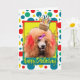 Celebrar um aniversário com este Cartão de Saudação de Cachorro de Poodle. Com um cupcake balanceado na cabeça, este design pode trazer um sorriso e risadinhas! BTW, Este design tem várias versões, com diferentes cores de fundo. Há também um convite para uma versão do Partido.