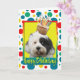 Celebrar um aniversário com este cartão tibetano de saudação do cão tibetano Terrier. Com um cupcake balanceado na cabeça, este design pode trazer um sorriso e risadinhas! BTW, Este design tem várias versões, com diferentes cores de fundo. Há também um convite para uma versão do Partido.