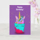 Um cartão de aniversário divertido para um Cupcake colorido do Unicórnio!