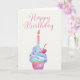 Cartão Cupcake Ilustrado Mão com uma Vela de Solteiro