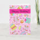 Este cartão de "feliz aniversário" personalizado é uma maneira divertida de dizer "Parabéns". Personalize as "palavras de aniversário felizes", assim como o sentimento de dentro, para dizer isso em suas próprias palavras ou partir como está. Personalizar com um nome. Celebrar um aniversário ou outra ocasião com o bolo de aniversário e a arte cupcake, que é perfeito para rapazes e raparigas, assim como para adultos. A arte reluzente apresenta um bolo de aniversário com velas e cupcakes, palavras brilhantes "Parabéns", pontos e galerias em um fundo azul-aqua turquesa em cores vibrantes de rosa, vermelho, verde, amarelo, laranja e azul. A arte é a arte original da designer tecido Phyllis Dobbs. O fundo do rótulo é cor-de-rosa com uma faixa cor-de-rosa fuchsia para personalização. Um bolo de aniversário está na dentro da direita do cartão e o sentimento está na esquerda. Totalmente personalizável. Este cartão de saudação de aniversário fofo e divertido está disponível em várias cores de fundo nesta loja.