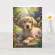 Um cachorrinho fofo no jardim das flores. Adequado para um cartão de aniversário para qualquer um. Sinta-se livre para alterar o texto