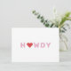 Howdy, partner! Express your Texan warmth with our Texas Howdy Heart Blank Greeting Card, where a heart replaces the 'O' in the classic greeting. The charming design expresses friendliness and is perfect for sending cheerful notes, heartfelt messages, or warm greetings to your loved ones. Whether it's a birthday, celebration, or just to say "hello," this card adds a touch of Texas charm to any occasion. Send a heartfelt "Howdy" with a dash of Southern hospitality! Share a bit of Texas charm and spread joy with this uniquely delightful card that captures the spirit of the Lone Star State.