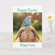 Cartão Cute Bunny and Blue Budge Personalized Easter