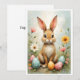 Cartão Cute Easter Bunny Eggs Flowers Flat