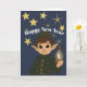Cartão Cute Elf Watcher Starry Night Happy New Year Foldi