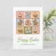 Celebrate Easter with this charming personalized design featuring a delightful patchwork quilt pattern. Cute bunnies, colorful spring flowers, and festive Easter eggs in soft pastel hues, it brings a touch of warmth and joy to any home. Customize with your family name for a special touch, making it a unique card.