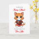A sweet Valentine's Day card that is romantic and cute! The front of this card has an orange cat holding a heart filled box of chocolate covered strawberries with a cute cat and strawberry pun. The inside says Happy Valentine's Day!