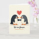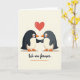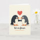 This sweet greeting card features two cartoon penguins standing face to face at the center of an off-white background. Their bodies are dark gray with white bellies, and they hold flippers together as if promising to stay close. Each penguin has large dark eyes, a gentle blush on the cheeks, and bright orange beaks and feet that add warmth to the design. A shiny red heart floats between them above, bringing a clear message of love and connection. Centered near the bottom, the words “We are forever.” appear in smooth script, with a simple orange line beneath that echoes the penguins’ beaks and feet. The gentle colors and tender details make this card a thoughtful choice for sharing love or Valentine’s Day feelings with someone special.