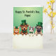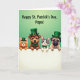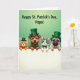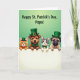 This card shows four baby animals peeking over a bright white ledge, lined up side by side like close friends sharing a secret 💚. Two kittens and two puppies wear matching green top hats, some with a small gold buckle, along with tidy green bow ties that hint at a sweet, affectionate celebration. Behind them, a soft gradient background shifts from light lime to yellow-green, giving the scene a sunny, springtime feel ☘️. Near the upper area, dark green text reads “Happy St. Patrick’s Day, Papa!” in large, easy-to-read lettering. One orange kitten with green eyes leans in with a curious, tender look, while a fluffy brown puppy gazes forward with a gentle, loyal expression. Beside them, a gray-and-white kitten with neat markings sits close to a tan pup with a wrinkled face and short snout, their shoulders nearly touching as if posing for a family photo. Their little paws curl over the ledge, and the hats and bow ties stand out in rich green against the pale white foreground and the lime-to-chartreuse background.
