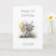 Make his first birthday even more memorable with this cute raccoon birthday card. The lovable raccoon with balloons in the background is wearing a party hat and is sitting next to a birthday cupcake with a burning candle.