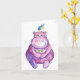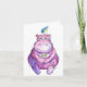 Esta é uma pintura mestiça original de um hipopótamo roxo balbusto com um pássaro azul na cabeça.