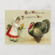 Este cartão adorável da acção de graças do vintage, por Ellen Clapsaddle, caracteriza uma rapariga que oferece uma espiga do milho a um grande peru. A mensagem no cartão é: Bons desejos para o dia da acção de graças.