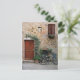 Esta fotografia bonita mostra uma bicicleta na frente de uma casa de pedra com obturadores vermelhos, um retrato cerâmico de Mary com o cheio do bebê Jesus, das videiras e das caixas de janela das flores na cidade de Pienza inTuscany, Italia.