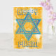 Cartão judaico da celebração de Purim. Um cartão estrelado do ouro festivo original que incorpora uma estrela de David decorativa azul por DatesDuJour. Etiquete esta loja e compre direto de DatesDuJour para os melhores negócios.