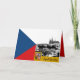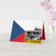 Cartão: Cartão de arte patriótica tcheca com desenho artístico histórico de Praga com a dominante do Castelo de Praga / Catedral de São Vito juntamente com a Bandeira da República Tcheca, emblema - amo meu país, dia dos pais, saudações de aniversário, casamentos. Praha - o coração da Europa.
