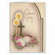 Este cartão tem uma cruz do ouro com uma bíblia e umas velas iluminadas. No interior é igualmente uma vela iluminada. Grande cartão da confirmação. Todo o design de cartão tem pelo menos 55 anos velho, e é recreado digital para o uso de hoje. Verificação para fora está combinando etiquetas do porte postal e de endereço.
