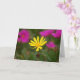 Um cartão com as flores selvagens na parte dianteira: margarida amarela com os rosas de papel no fundo. A foto foi tomada no centro de conferências de Marconi em Marshall, Califórnia.