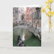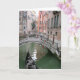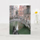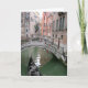 Fotografia artística original em um cartão do vazio 5x7. Represente características uma gôndola que está sendo navegada através dos canais coloridos e estreitos de Veneza, Italia; a gôndola foi editada digital para ser preto e branco para um contraste agradável.
