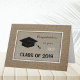 Este cartão da graduação do PhD caracteriza um boné de formatura preto à esquerda com as palavras "parabéns em seu PhD" todos no direito e na CLASSE DE ANO na parte inferior em um fundo tan de serapilheira. O design é afiado em o que olha como um quadro com ser interno branco e ser exterior uma serapilheira tan mais escura. Uma grande maneira de felicitar o formando novo do PhD. Copyright Kathy Henis