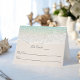 Os pequenos detalhes tornam sua recepção de casamento memorável. Este cartão de mesa dobrável foi especialmente projetado para casamentos na praia ou em destinos de viagem e apresenta uma refrescante costa oceânica com água azul aqua e ondas suaves na areia. O texto opcional foi incluído com espaço para os números das mesas, seleções de refeições e nomes dos convidados. O verso tem o nome da noiva e do noivo e a data do casamento. Todo esse texto é opcional e você pode editar ou excluí-lo se preferir o cartão sem texto. Este cartão de mesa foi colocado em um cartão dobrável de 4x5,6 polegadas para ser usado como um cartão de barraca.