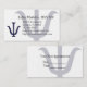 Marinho no cartão branco da nomeação para uma prática psiquiátrica. Cartão de visita na parte dianteira, cartão da nomeação na parte traseira.