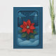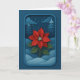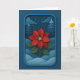 Uma vibrante poinsétia vermelha floresce no primeiro plano de uma floresta nevada, suas pétalas brilhando contra um pano de fundo de neve caindo, árvores perenes e colinas em camadas. Renderizada em um estilo de recorte de papel dimensional, esta ilustração evoca calor festivo e quietude sazonal. O céu azul profundo, estrelas espalhadas e nuvens suaves adicionam profundidade e serenidade à cena.